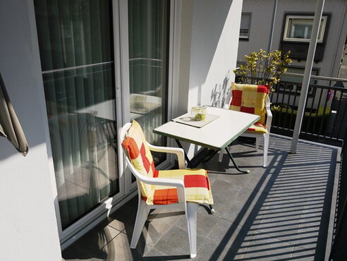 im 1. OG verfügt über einen Balkon und bietet Platz für