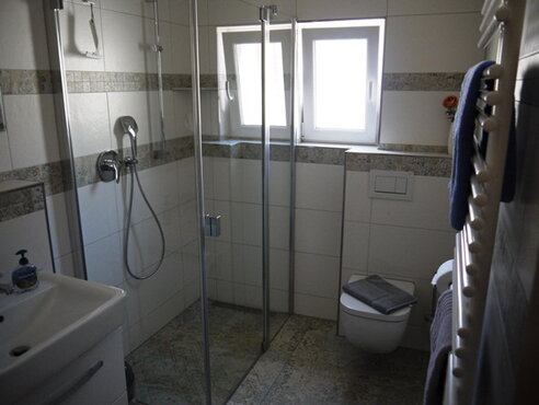 - Bad mit bodentiefer Dusche und Handtuchheizkörper, Föhn vorhanden